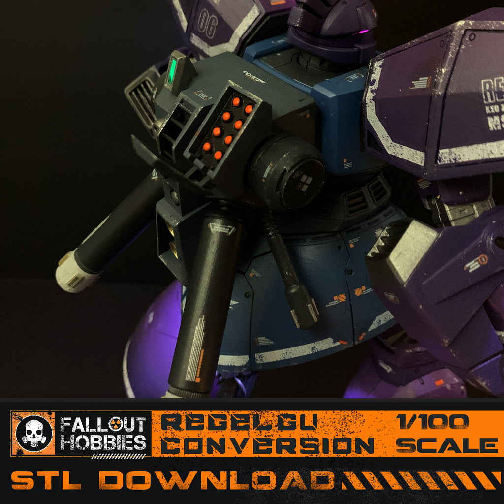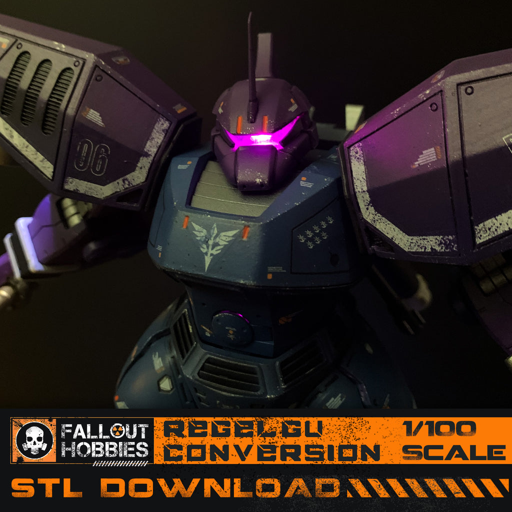 Downloadable STL files to convert an MG Scale Gelgoog in a ReGelGu Mecha Suit in either 1/100 scale.