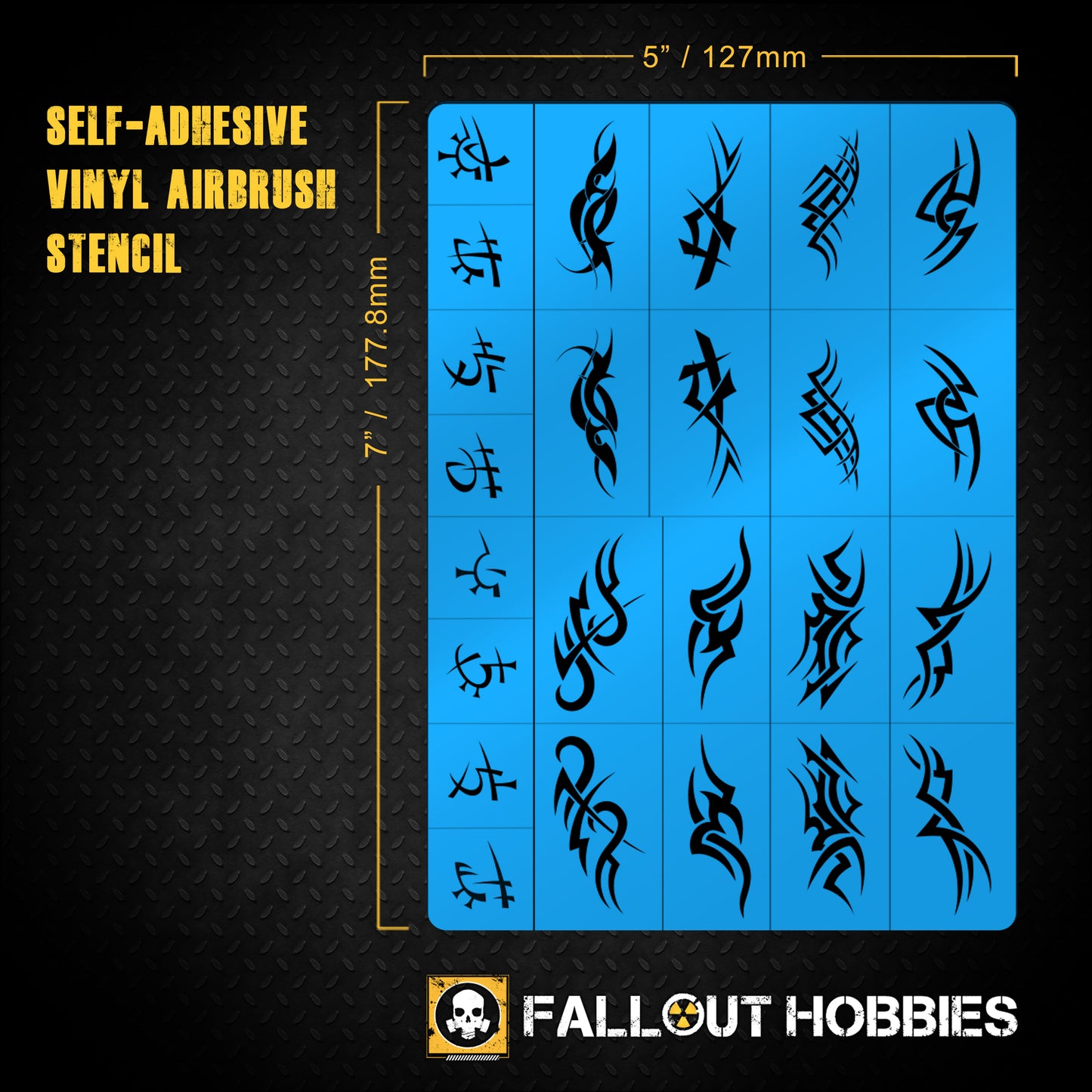 Alle Airbrush-Schablonen von Fallout Hobbies werden auf hochwertigem, leicht haftendem, weißem Vinyl mit Farbmaske hergestellt. Sie sind langlebig und können bei richtiger Pflege und Entfernung mehrfach verwendet werden.