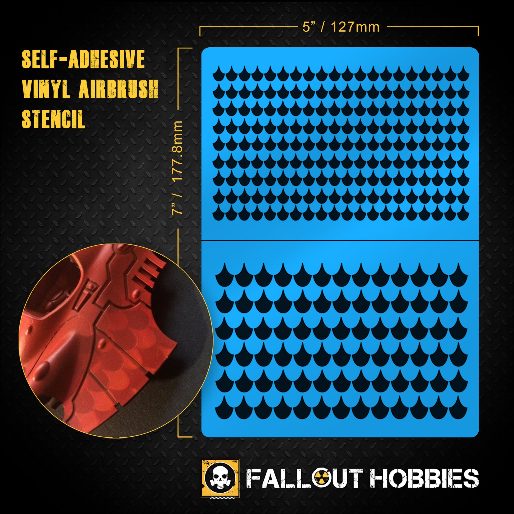 Alle Airbrush-Schablonen von Fallout Hobbies werden auf hochwertigem, leicht haftendem, weißem Vinyl mit Farbmaske hergestellt. Sie sind langlebig und können bei richtiger Pflege und Entfernung mehrfach verwendet werden.