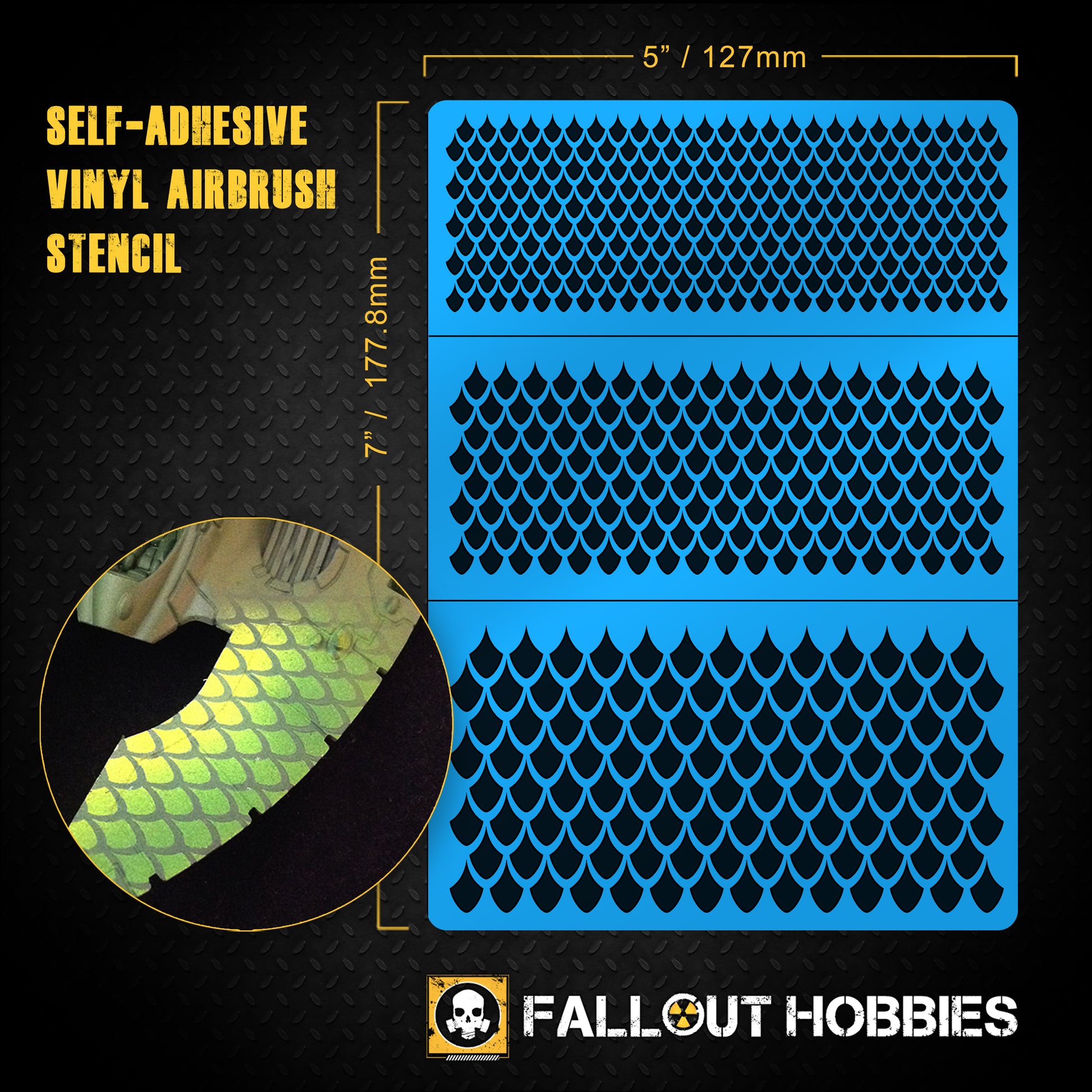 Alle Airbrush-Schablonen von Fallout Hobbies werden auf hochwertigem, leicht haftendem, weißem Vinyl mit Farbmaske hergestellt. Sie sind langlebig und können bei richtiger Pflege und Entfernung mehrfach verwendet werden.
