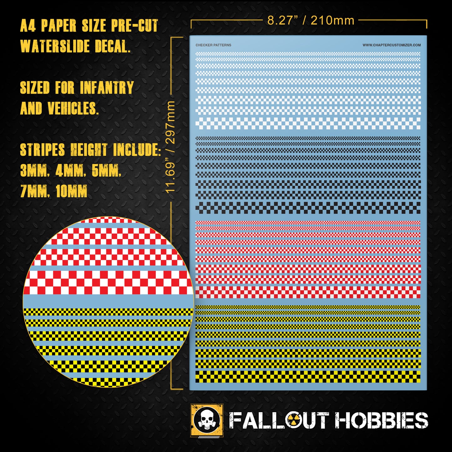 - 1 Aufkleberbogen mit Checker-Muster: Denn nichts ist so taktisch stilvoll wie das Checker-Muster auf einem Panzer.