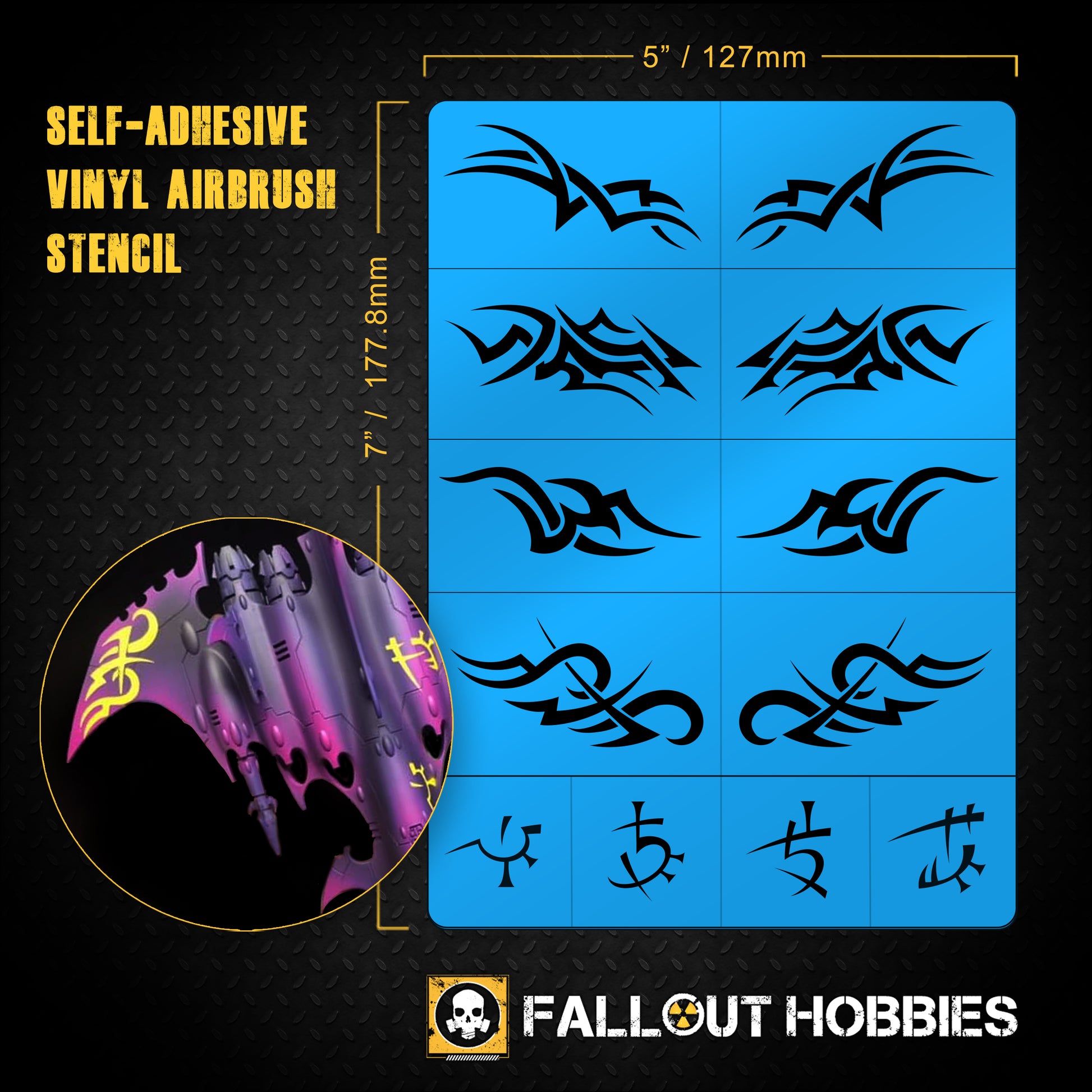 Les pochoirs aérographe Fallout Hobbies sont tous produits sur du vinyle de masque de peinture blanc adhésif de haute qualité et à faible adhérence. Ils sont durables et dureront de multiples utilisations avec un entretien et un retrait appropriés.