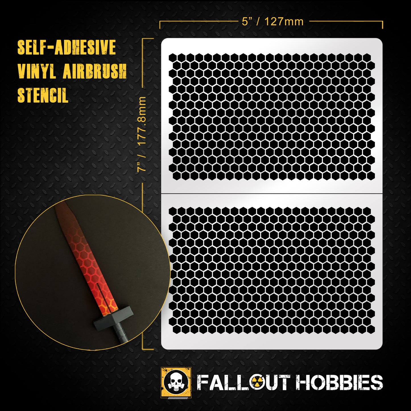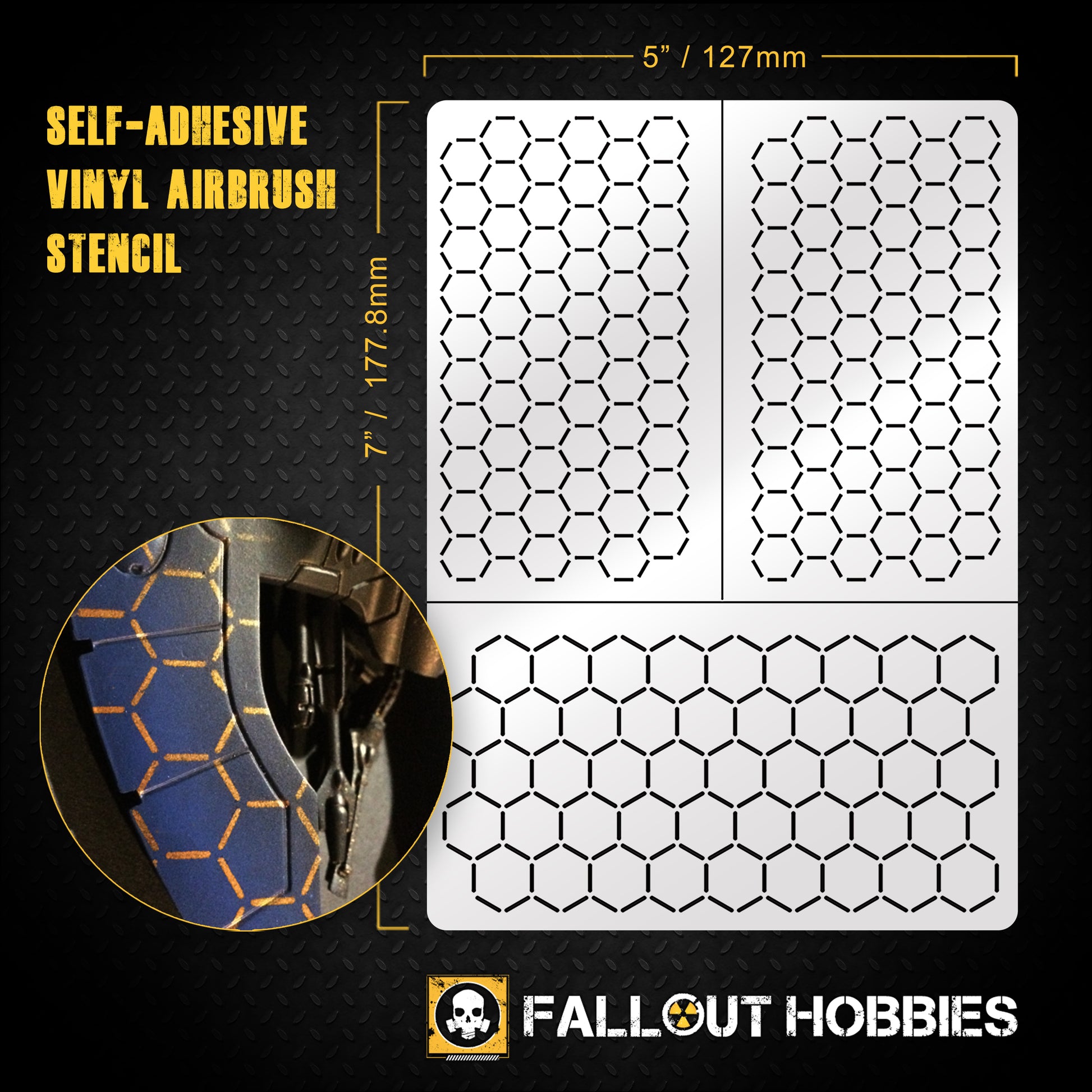 - 1 Pochoir à mailles hexagonales : Le motif hexagonal classique, prêt à hexifier vos unités et votre terrain.