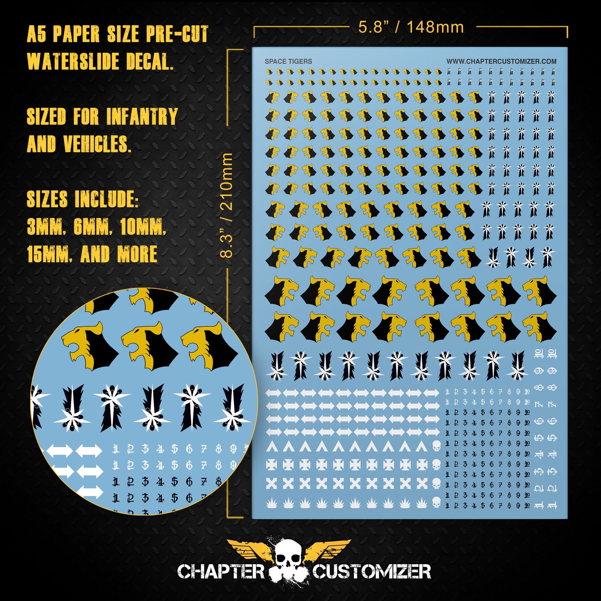 Cette feuille de décalcomanies pour toboggan aquatique prédécoupée au format A5 est conçue pour vous permettre de mettre à niveau et de personnaliser vos modèles miniatures. Ces feuilles de décalcomanies polyvalentes comprennent un assortiment de décalcomanies de la taille d'une infanterie et d'un véhicule ainsi que des marquages et des chiffres d'escouade pour permettre une mise à niveau complète de la miniature.