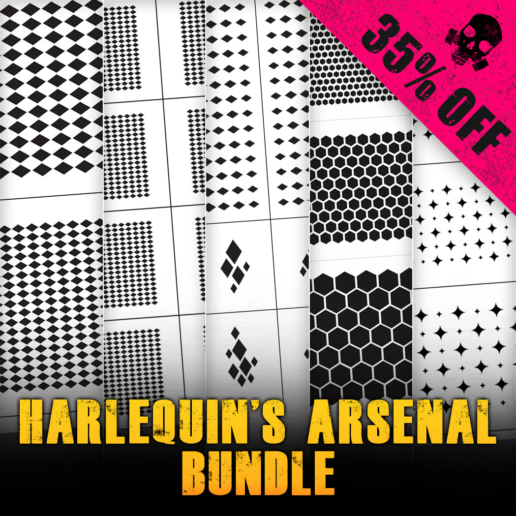 • 1 Infantry Jester Diamonds Stencil: Perfect for smaller figures looking to stand out on the battlefield.